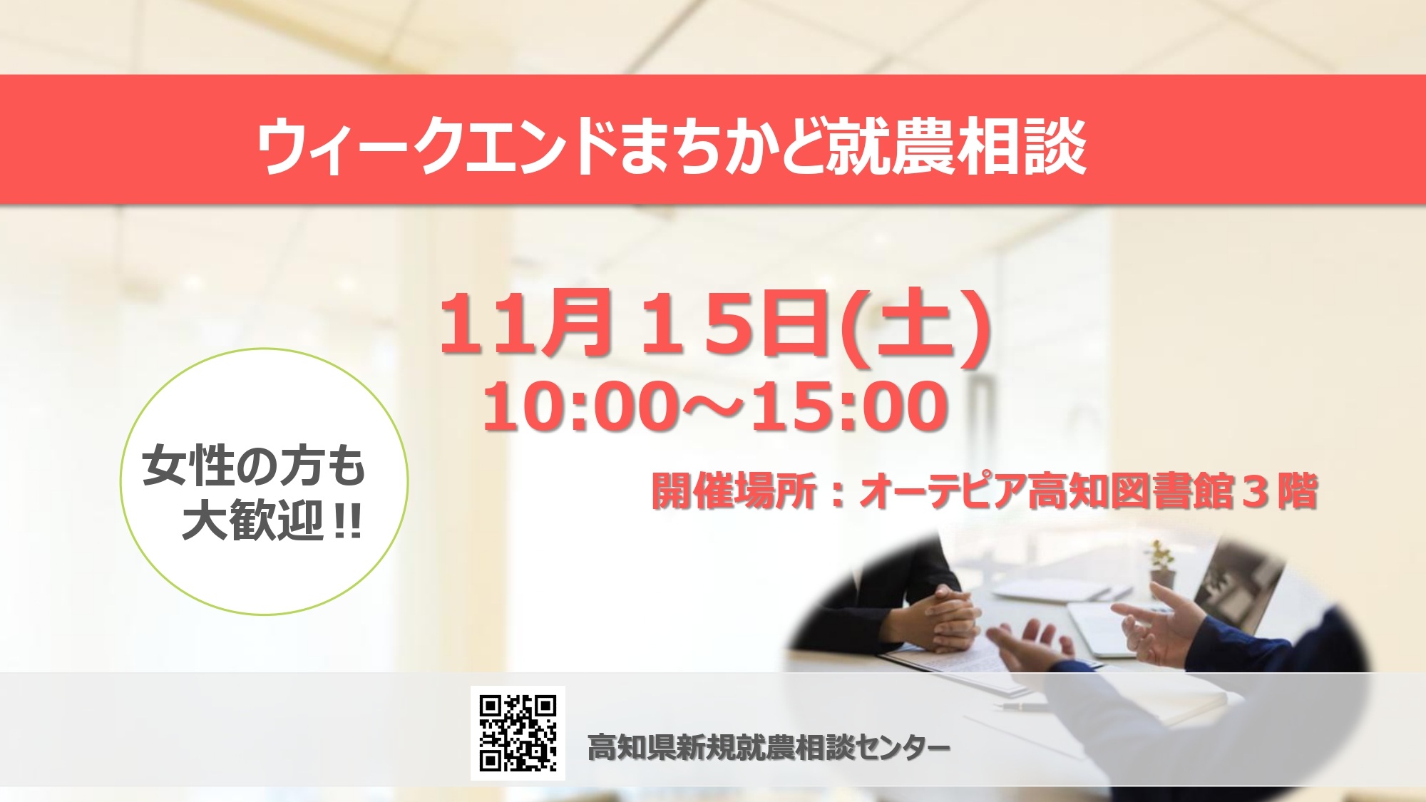 ウィークエンドまちかど就農相談をオーテピア高知図書館で開催します‼