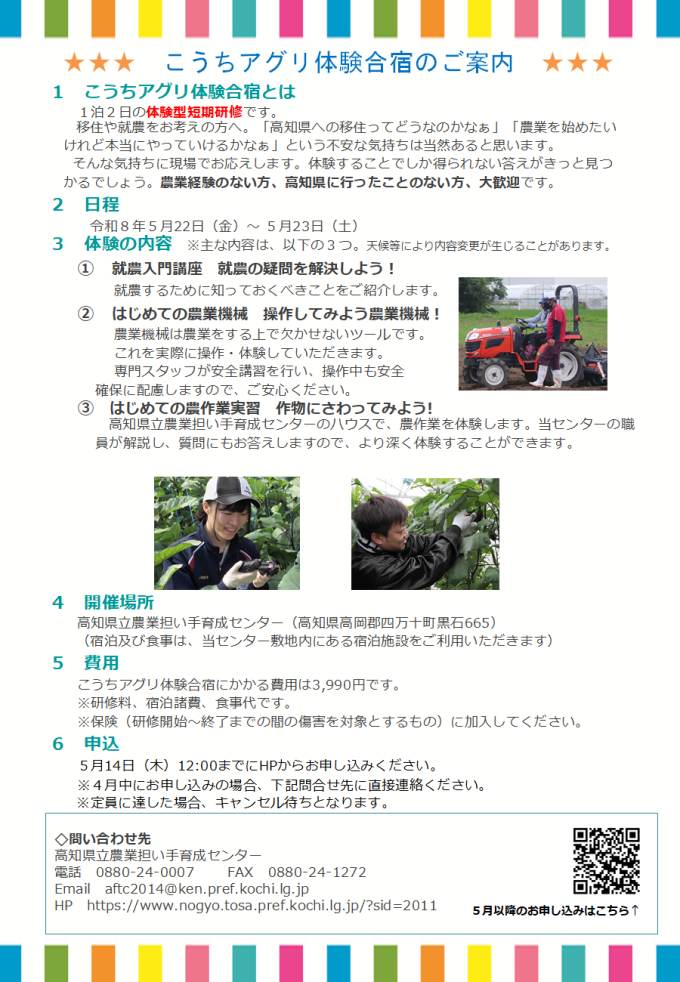 【参加者募集】第1回こうちアグリ体験合宿のご案内