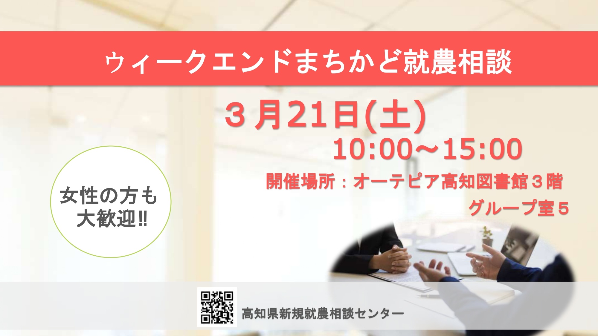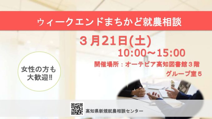 ウィークエンドまちかど就農相談をオーテピア高知図書館で開催します‼